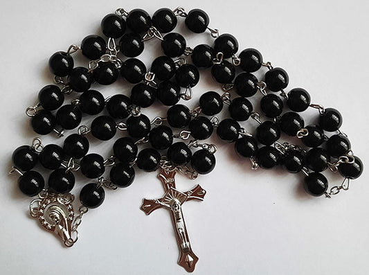 Black Glass Rosary - 8mm Beads