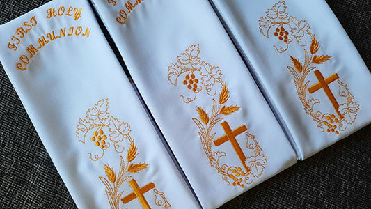 First Holy Communion Stole - Machine Embroidered - White Gaberdine Fabric