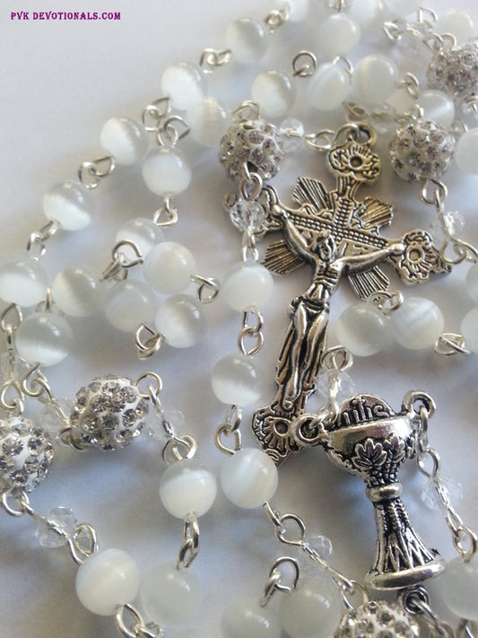 One Decade Rosary - First Holy Communion - Monstrance Medal - Clear Glass Crystal