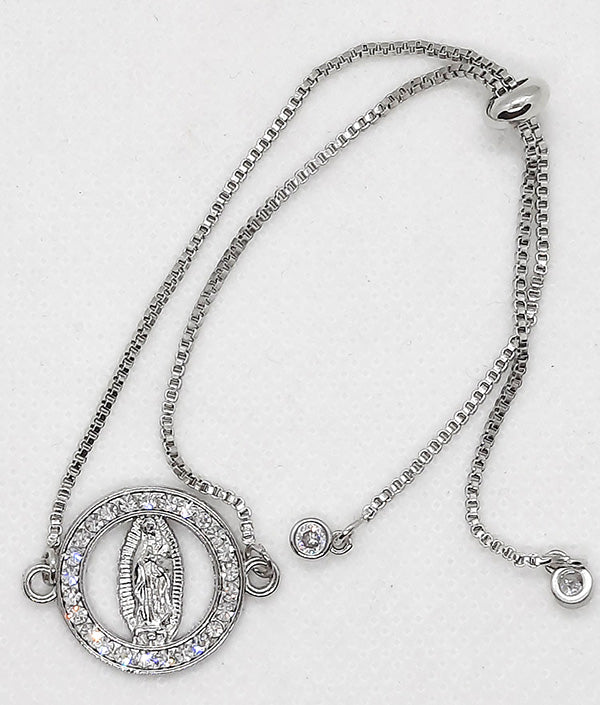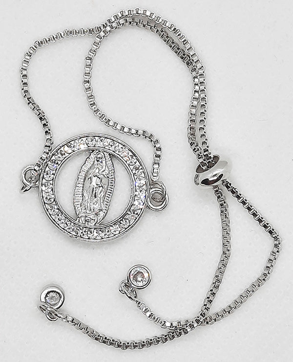 Lovely silver adjustable bracelet with medal of Our Lady of Guadalupe.