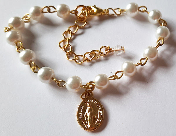 First Holy Communion Bracelet - White Glass Pearl Beads