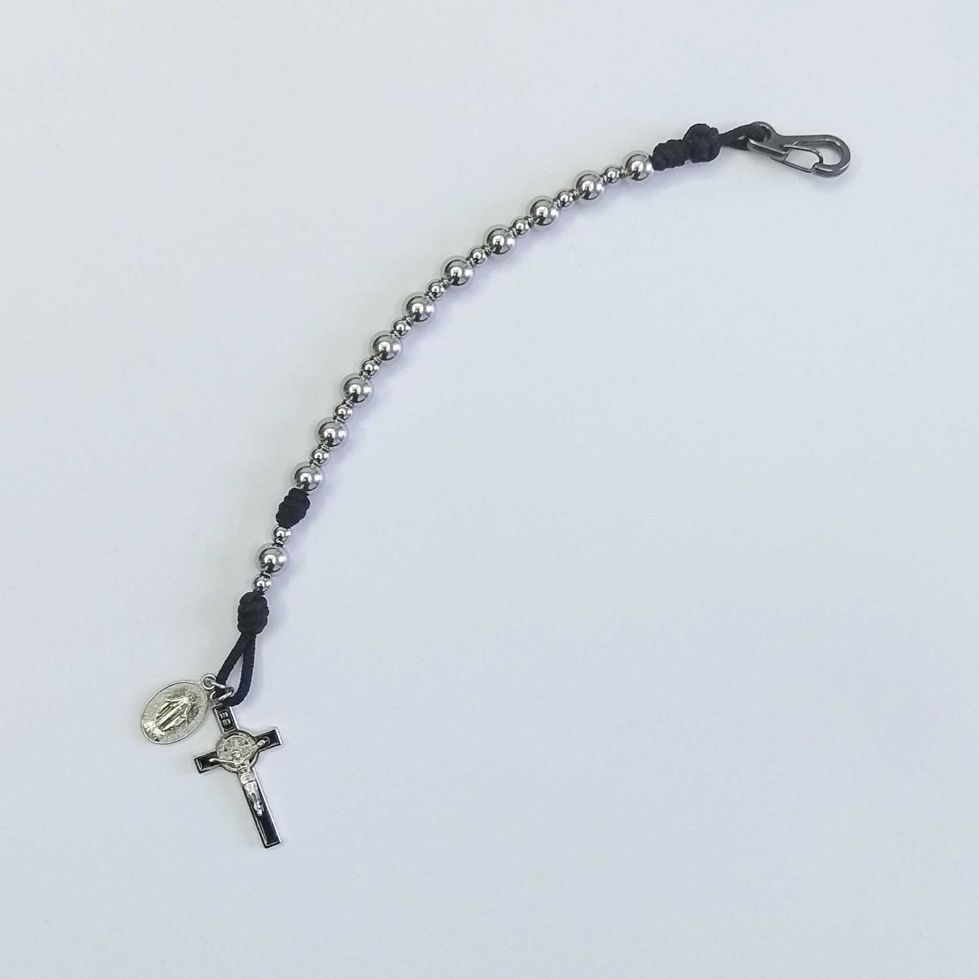 One Decade Micro Cord Rosary Bracelet Black - Stainless Steel