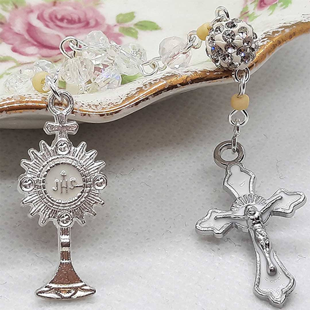 One Decade Rosary - First Holy Communion - Monstrance Medal - Clear Glass Crystal