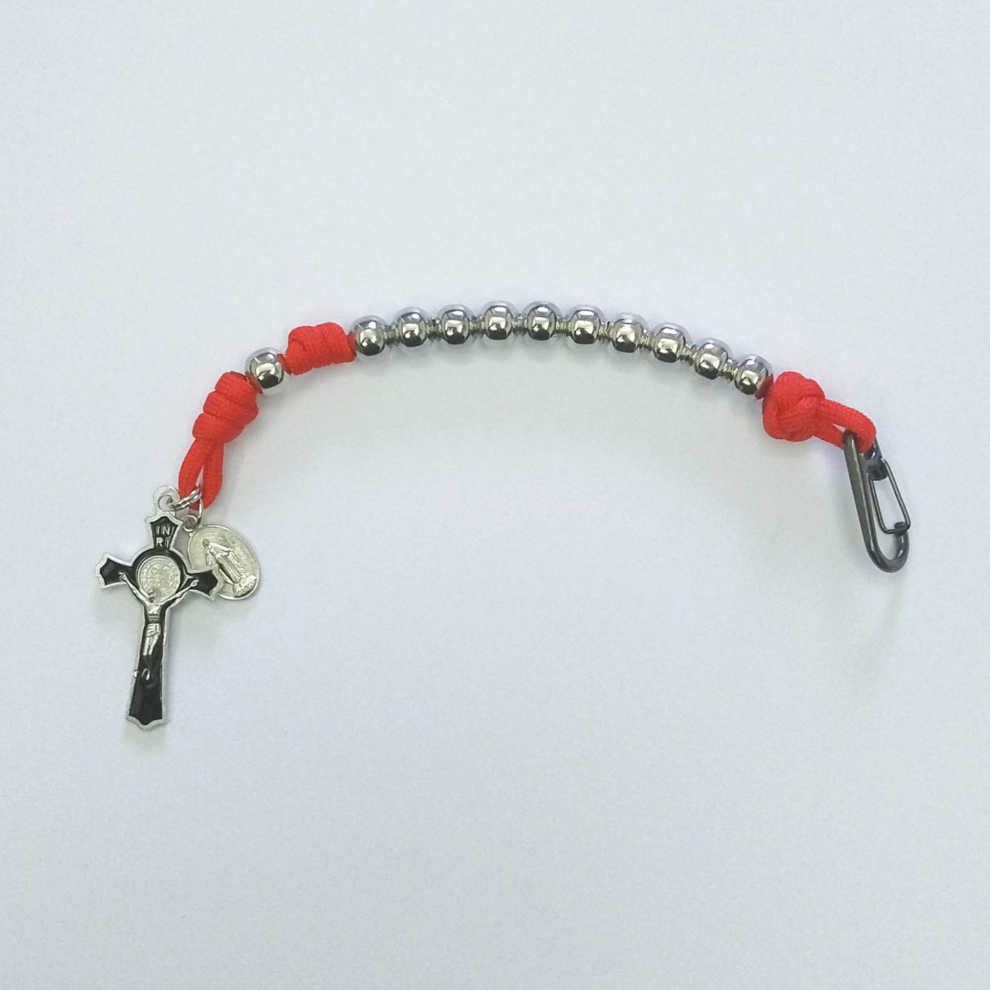 Paracord One Decade Rosary Silver Metal Beads (Red colour)