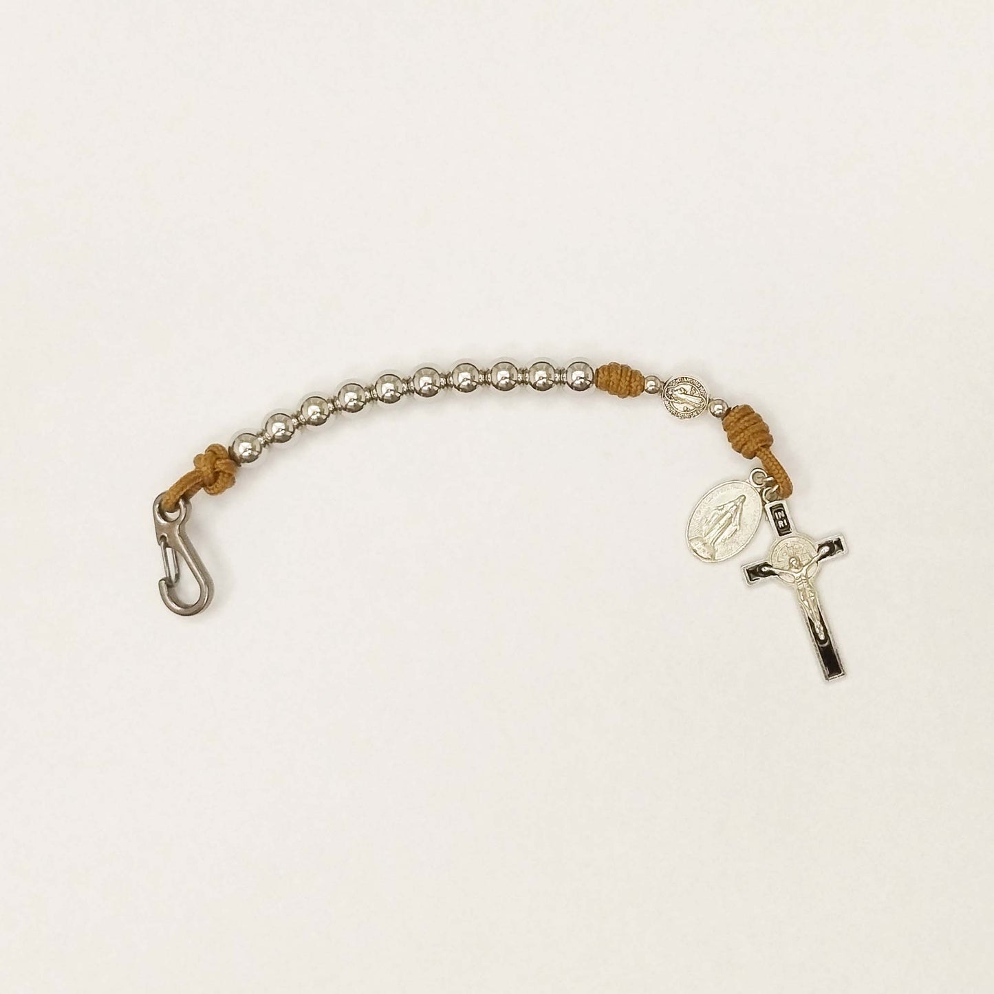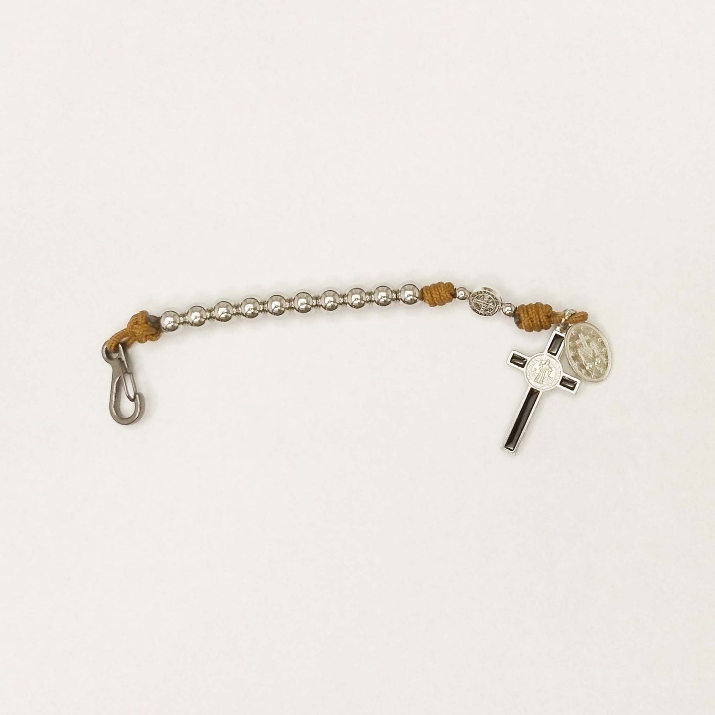 St Benedict Stainless Steel One Decade Micro Cord Rosary Brown