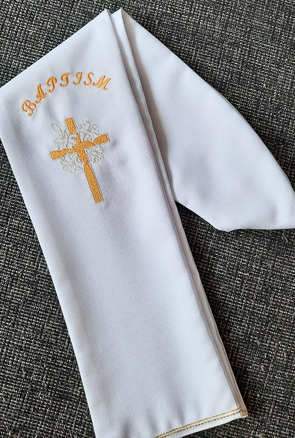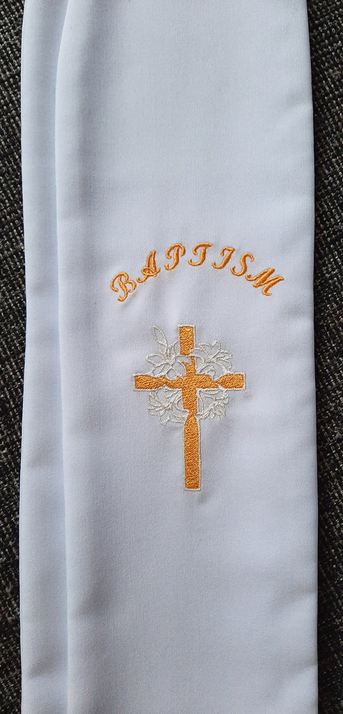 Baptism Stole- Machine Embroidered - White Gaberdine Fabric