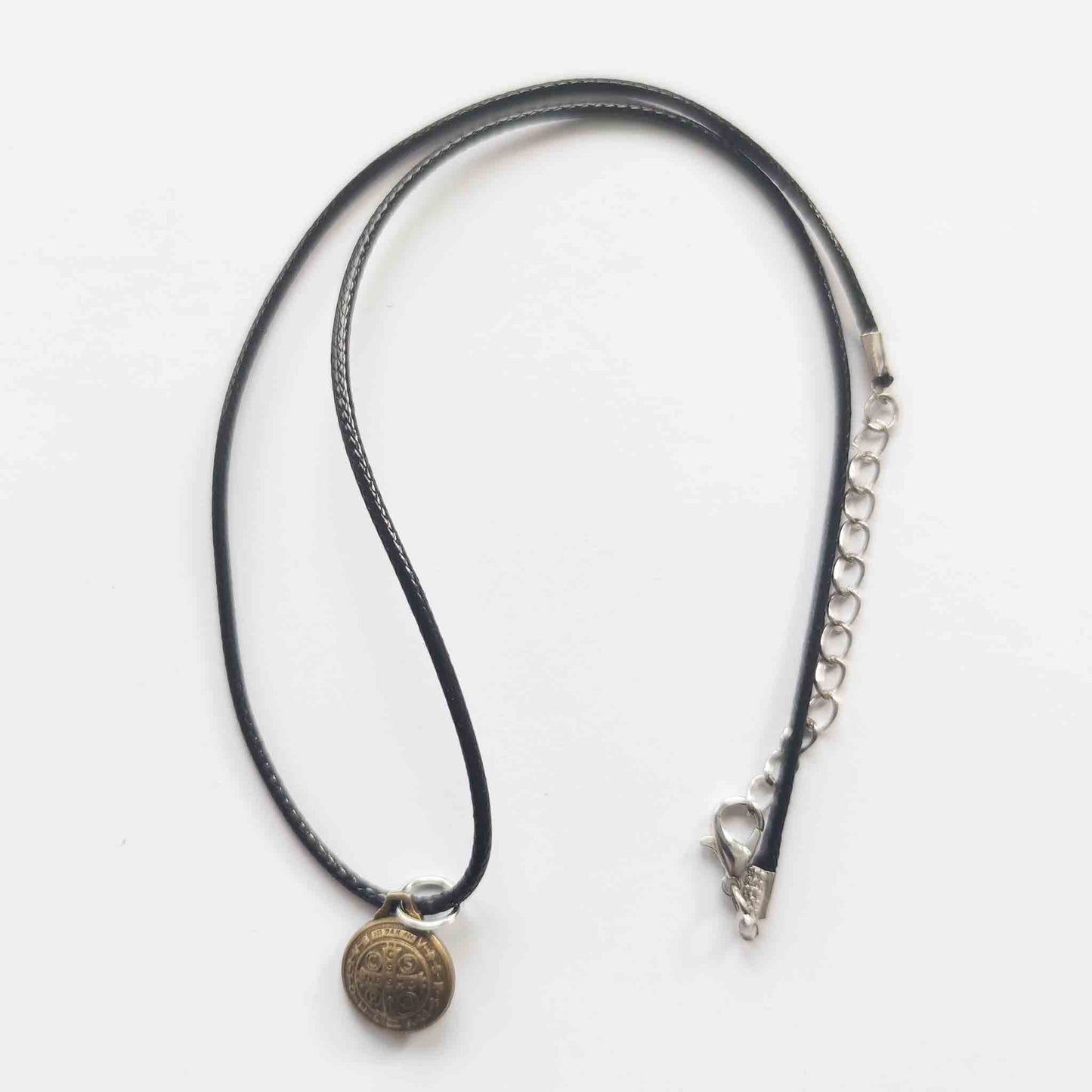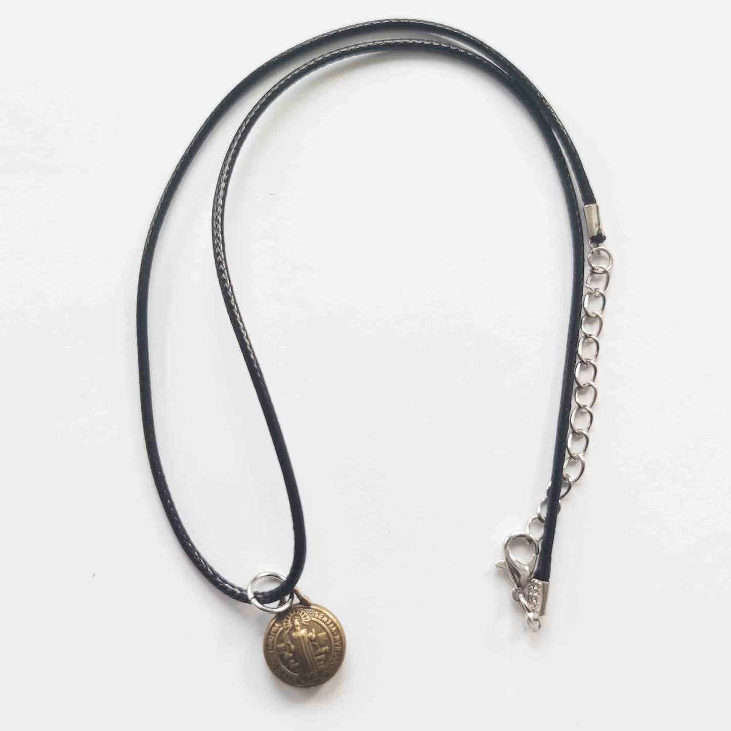 St Benedict Dome Medal Religious Necklace Bronze, made using a leather cord.