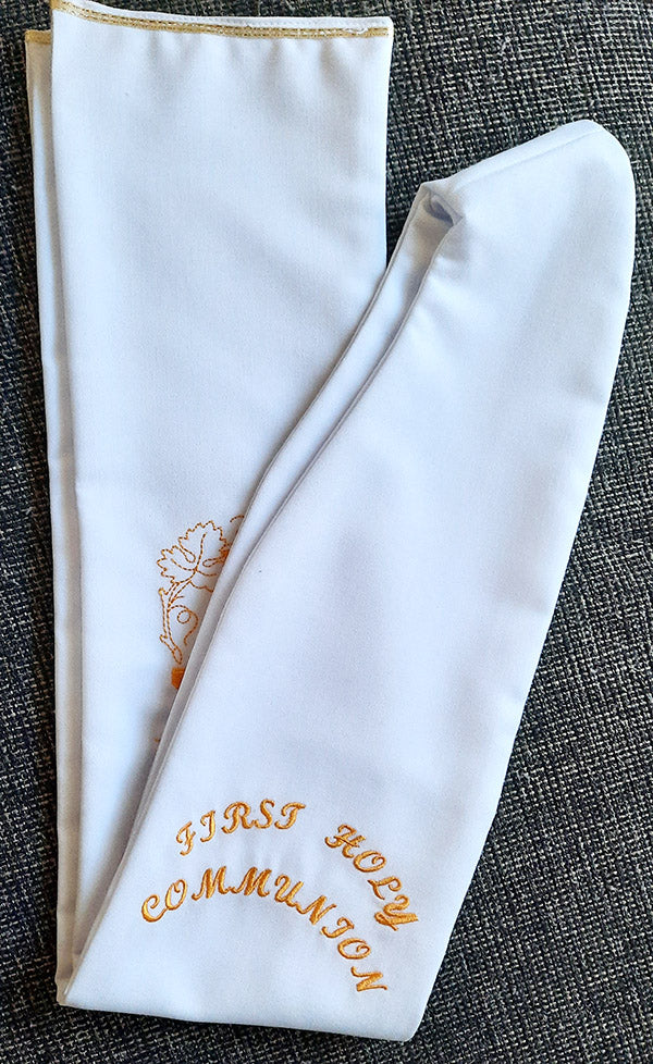 First Holy Communion Stole - Machine Embroidered - White Gaberdine Fabric