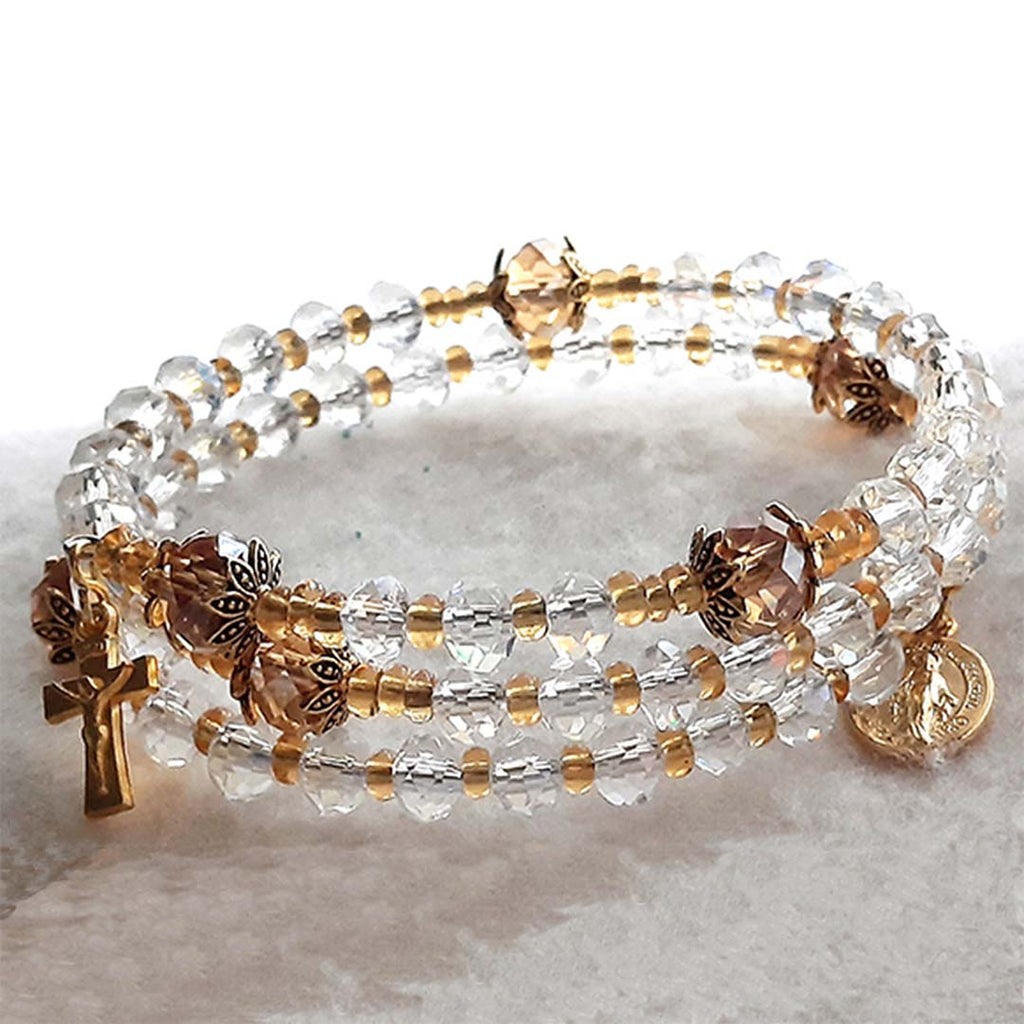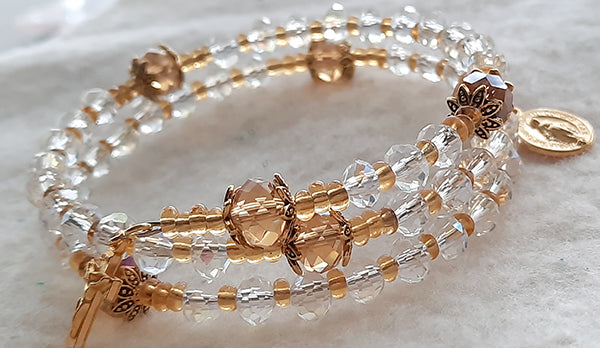 Five Decade Coil Rosary Bracelet - Clear/Gold