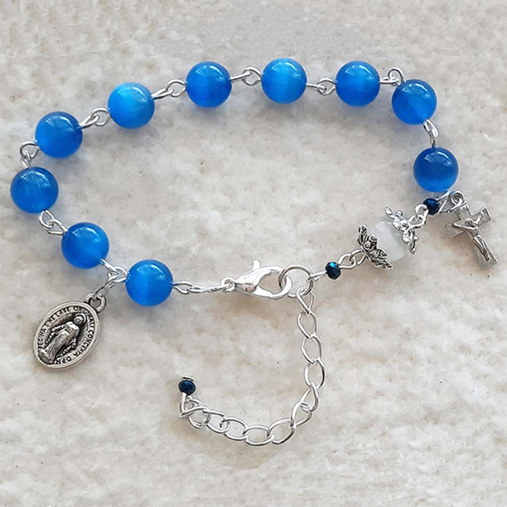 One Decade Rosary Bracelet - Blue Cats Eye Beads