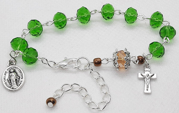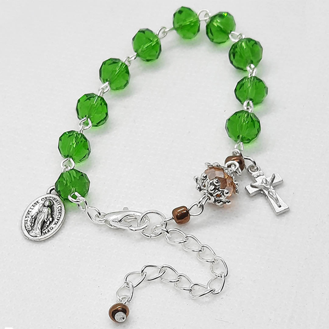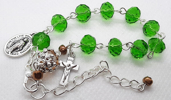 One Decade Rosary Bracelet - Green Glass Crystal Beads