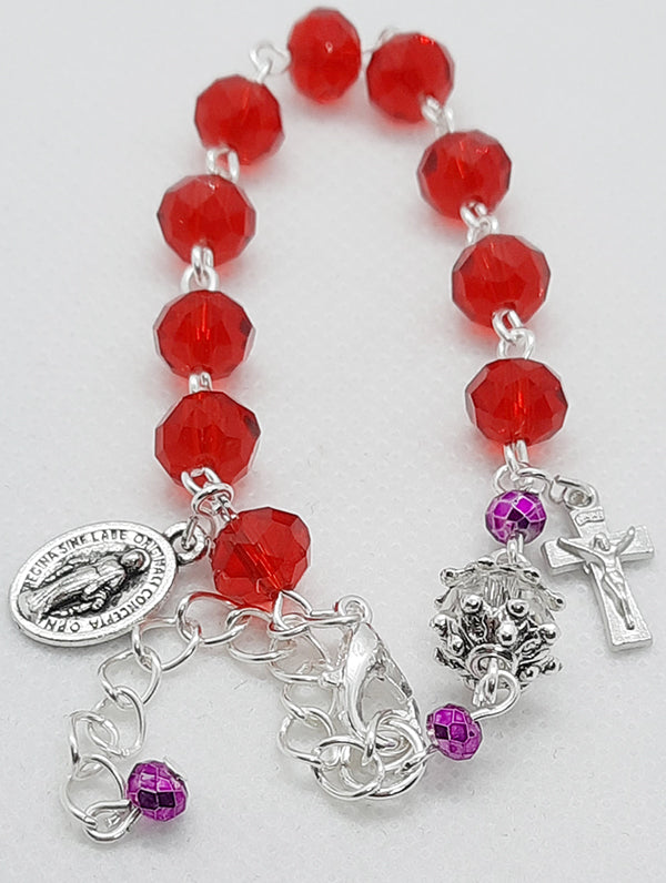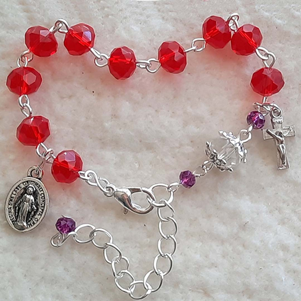 One Decade Rosary Bracelet - Red Glass Crystal Beads