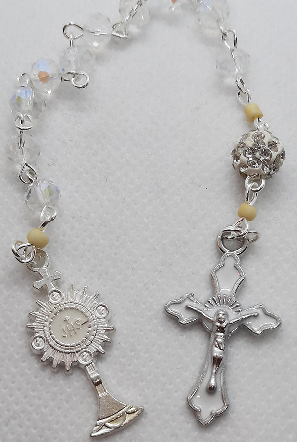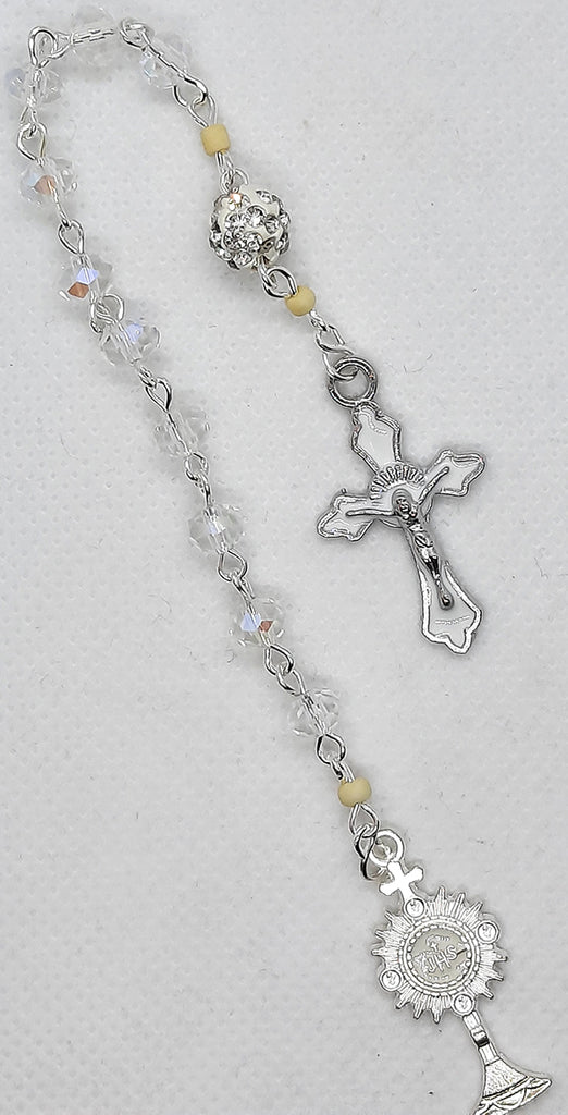 One Decade Rosary - First Holy Communion - Monstrance Medal - Clear Glass Crystal