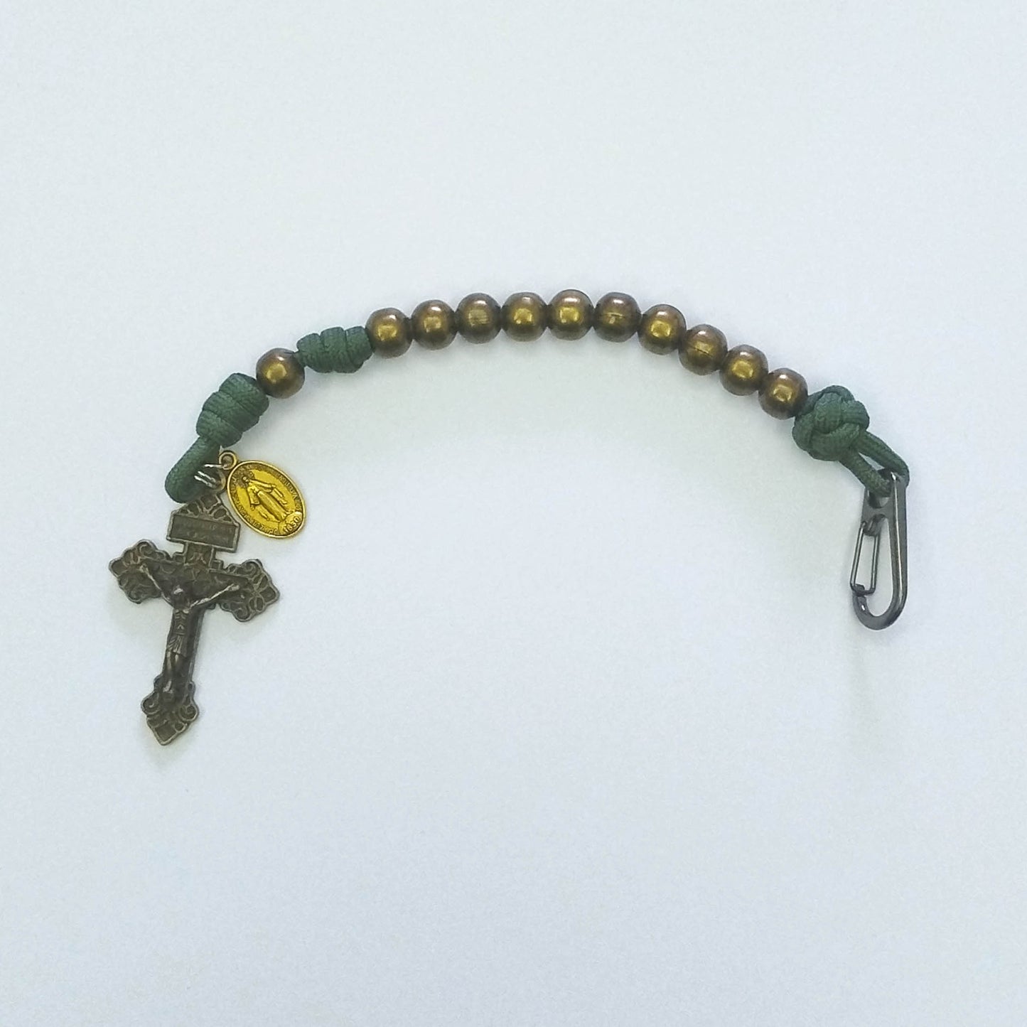 Paracord One Decade Rosary Bronze Metal Beads (Green colour)