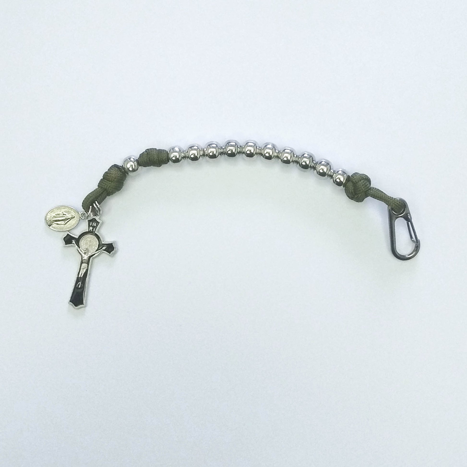 Paracord One Decade Rosary Silver Metal Beads (Green colour)