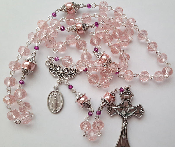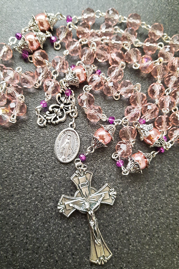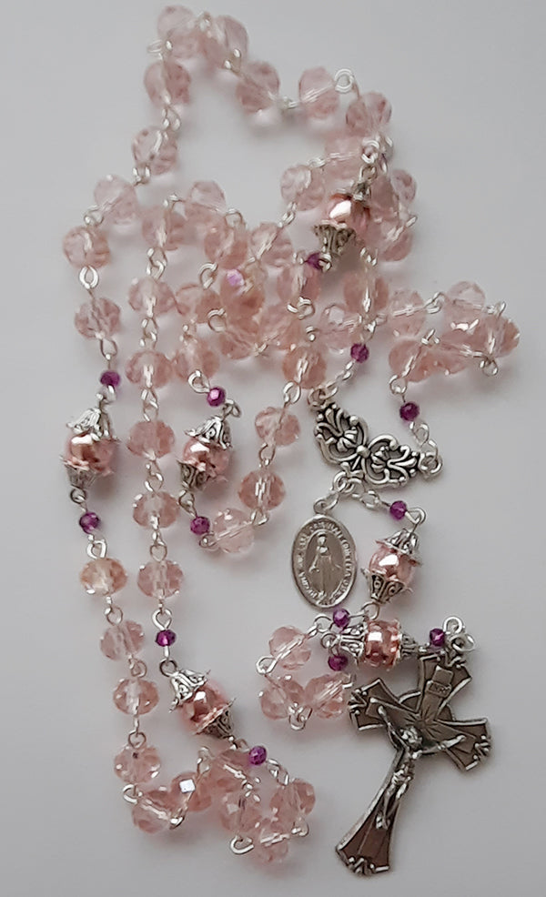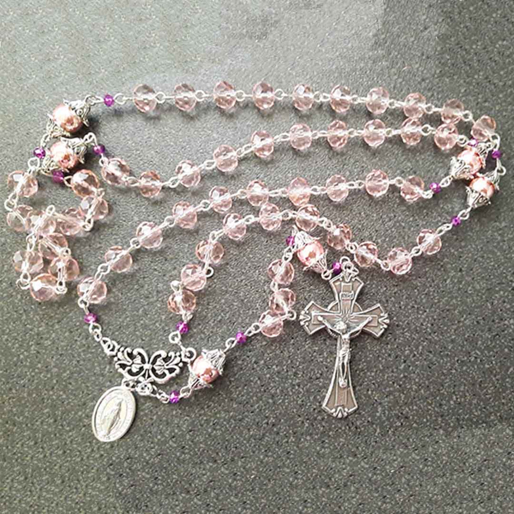 6x8mm pink glass crystal beads for the Hail Mary prayer