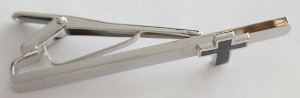 Priest Collar/Tie Clip - Silver - Black Enamel Cross