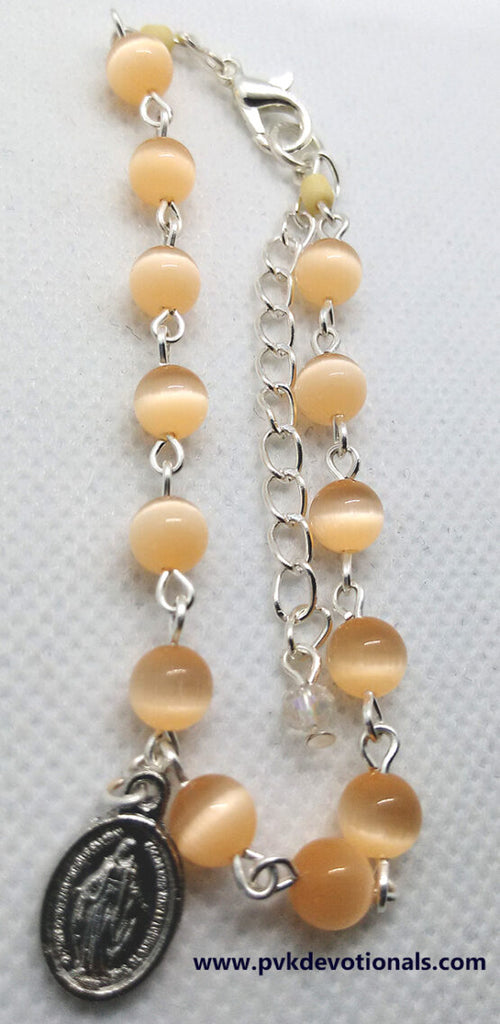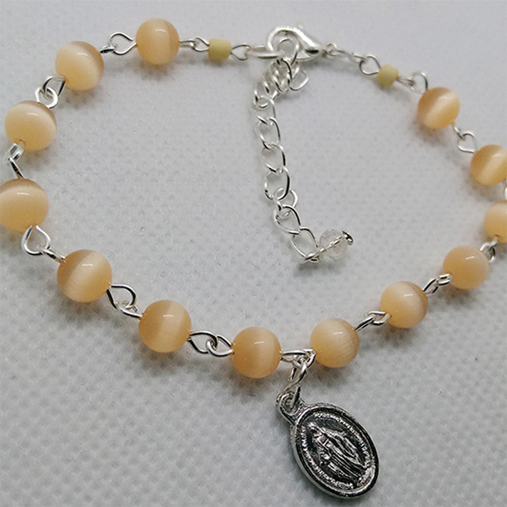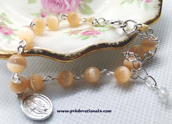 Religious Bracelet - Peach Cats Eye Beads with Miraculous Medal