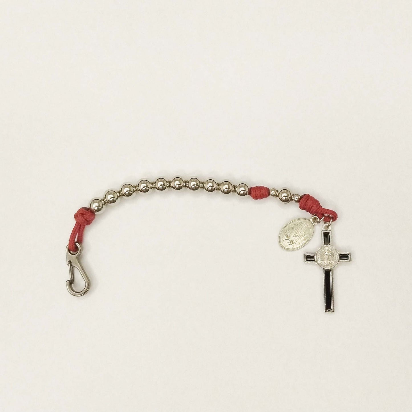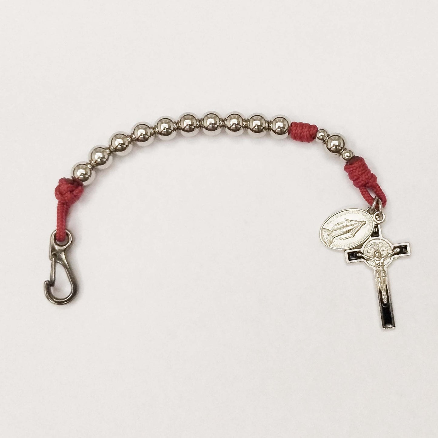 St Benedict One Decade Micro Cord Rosary Red is made of